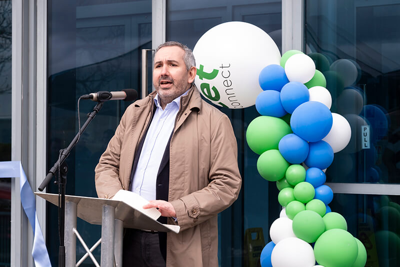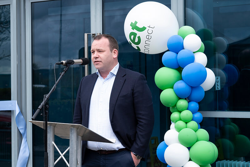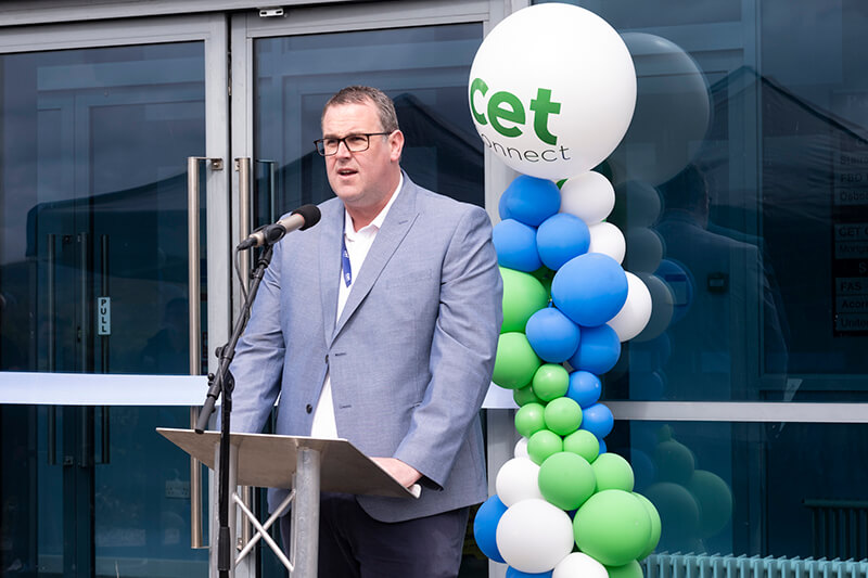 The event featured speeches from Managing Director Paul O’Neill, Group CEO Brendan Mee, and Alberto Cristerna from Enterprise Ireland. Paul O’Neill had the honour of cutting the ribbon and officially opening our new headquarters — a proud moment for both him and the entire CET Connect team.